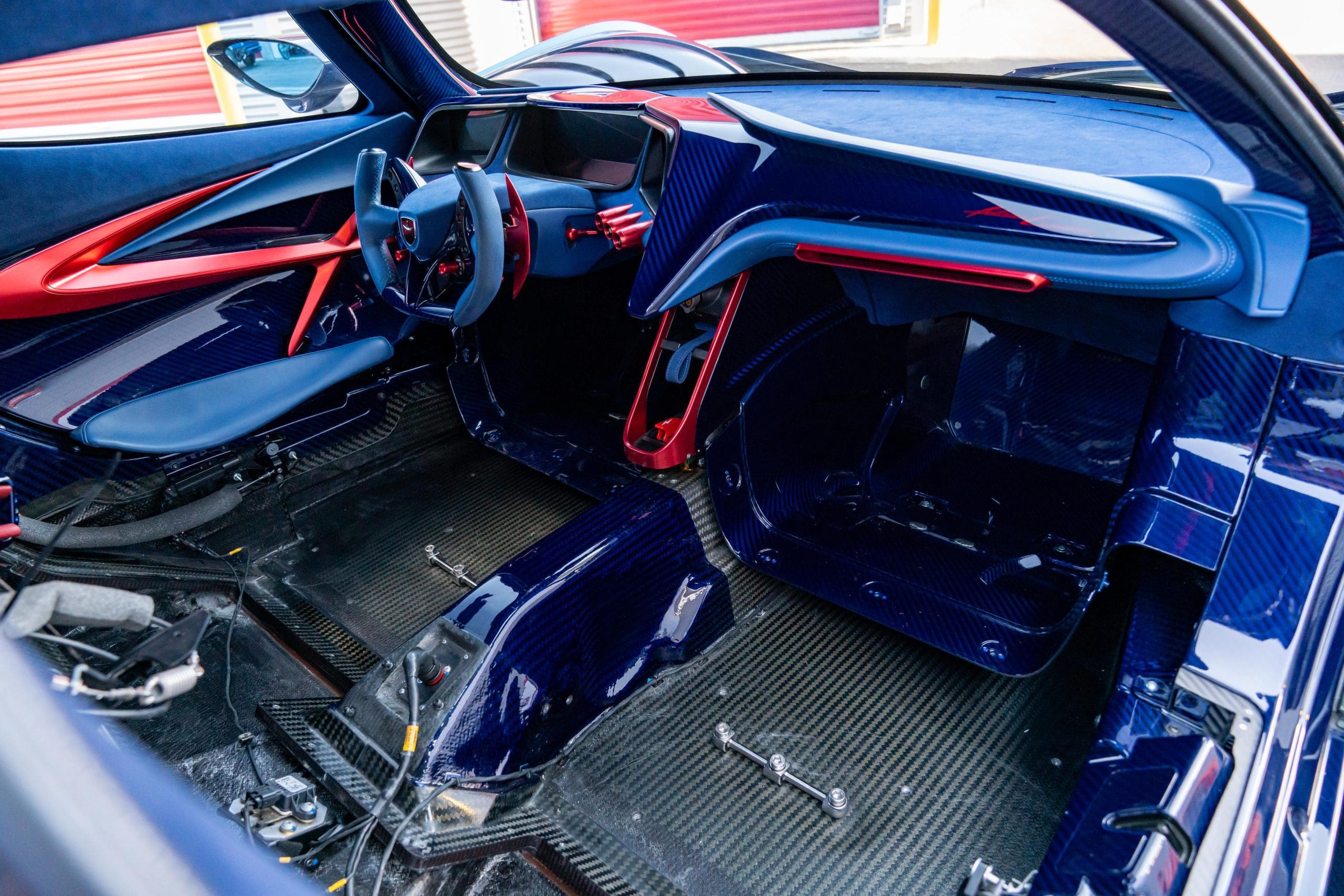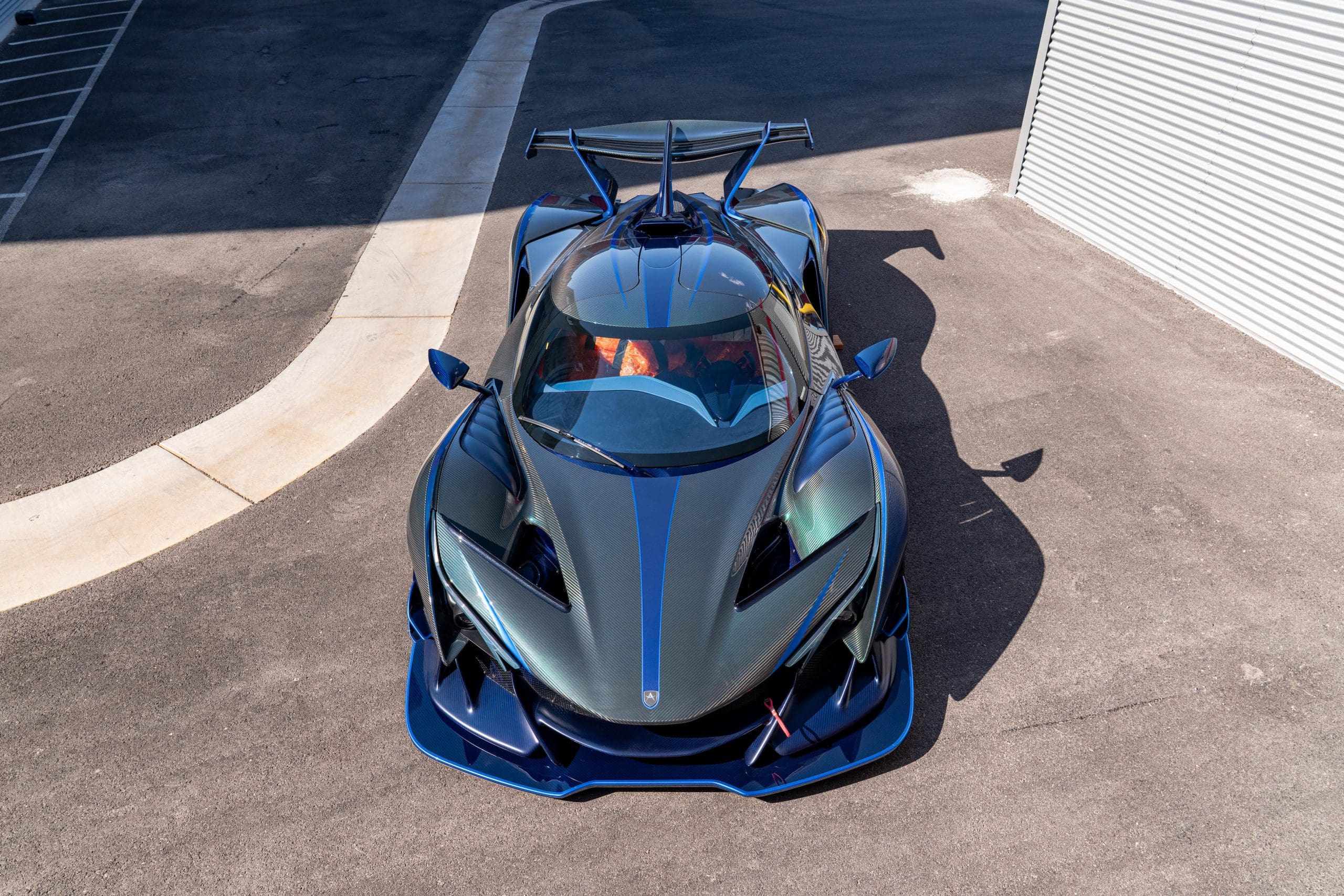 Its pushrod suspension, featuring Bilstein three-way adjustability, and Brembo carbon-ceramic brakes ensure race-ready handling and stopping power. The design, crafted from exposed carbon fiber, generates 1,350 kg of downforce at 299 km/h and features organic, flowing surfaces, making it both functional and otherworldly.
