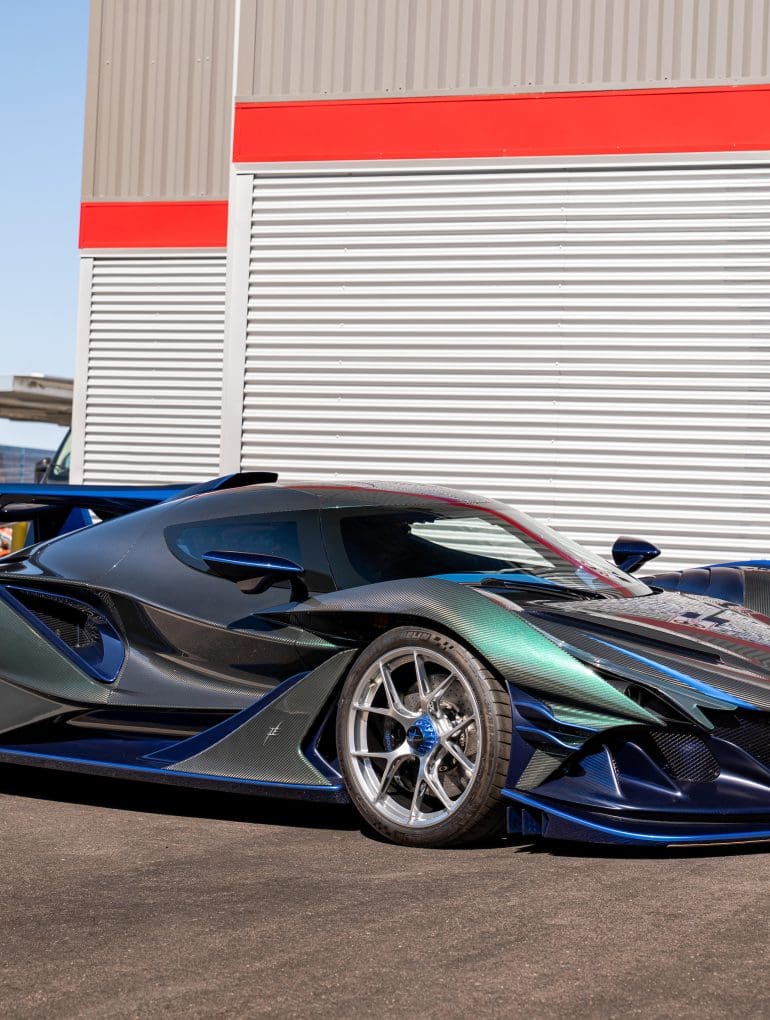 A pure celebration of analog driving, the IE combines motorsport-grade hardware, a naturally aspirated V12 engine, and a carbon-fiber monocoque to deliver visceral performance and styling inspired by nature, science fiction, and Le Mans prototypes.