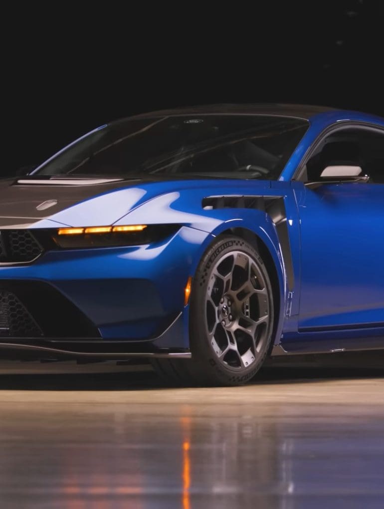 The Mustang GTD is the most powerful, most advanced Mustang ever built. acking 815 horsepower and 664 lb-ft of torque from a 5.2L supercharged V8, it features tech derived from racing: a rear-mounted transaxle for ideal weight balance, pushrod suspension visible through the rear window, titanium exhaust, carbon fiber panels, and an active Drag Reduction System (DRS) designed to generate up to 2,000 pounds of downforce at 180 mph.