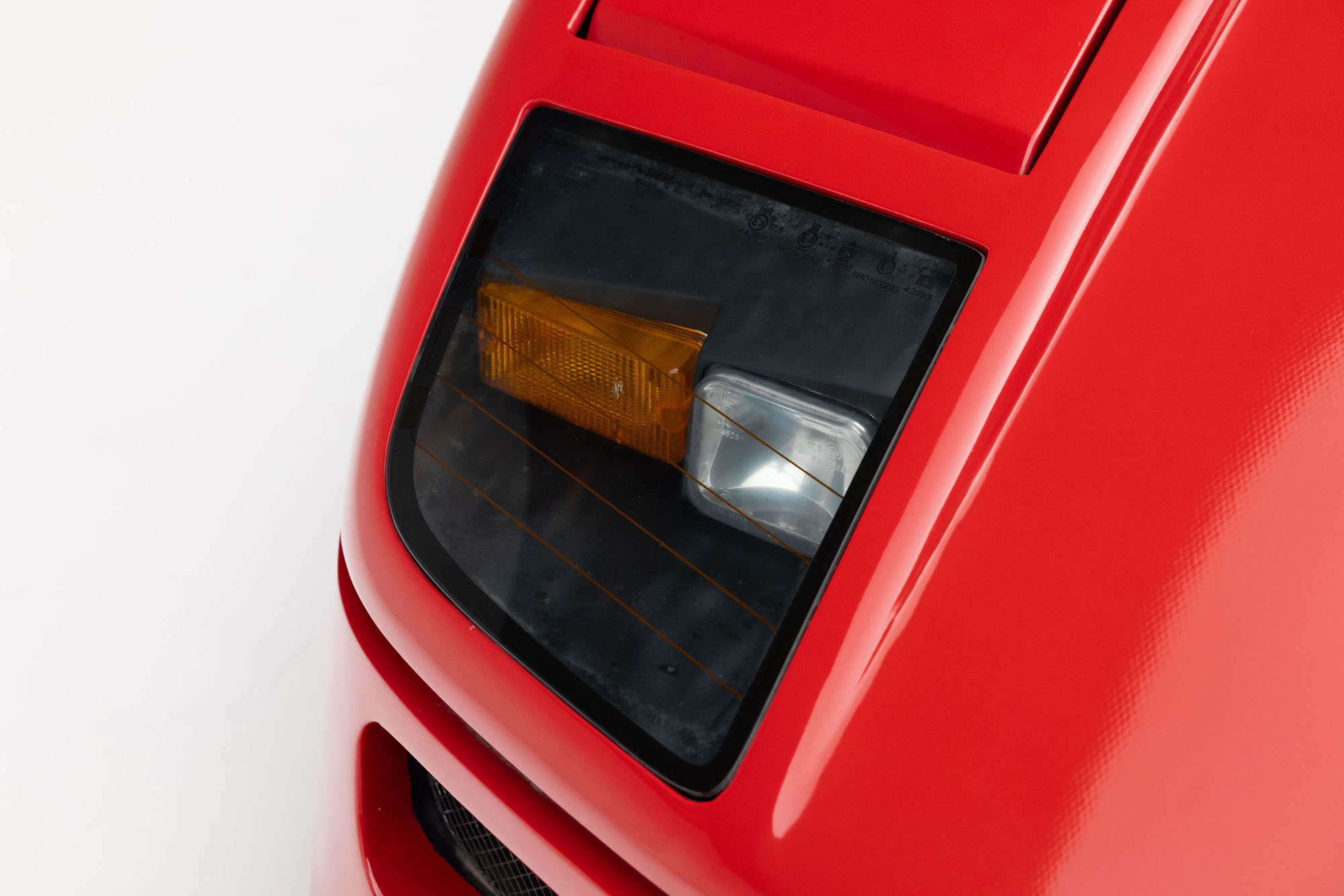 This F40 is undoubtedly one of the last examples not only still being with its original owner but also having near delivery mileage. Completing assembly in February 1990, chassis number 84036 was specified as a European-market example with instruments in kilometers. As such, the car was built without catalytic converters and adjustable suspension, making it one of the prized “non-cat, non-adjust” chassis.