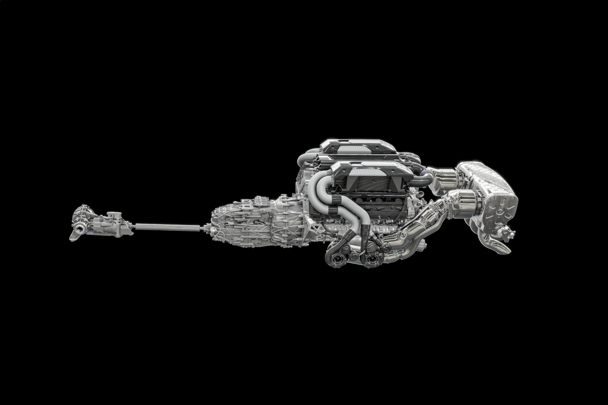 The Tourbillon’s packaging represents a dramatic shift: the new V16 engine, longer and narrower than the outgoing W16, is mounted at an angle. This change, while subtle in appearance, is profound in impact, allowing the engineers to create super-long Venturi tunnels for the diffuser, which starts beneath the cabin and extends nearly halfway down the vehicle’s length.