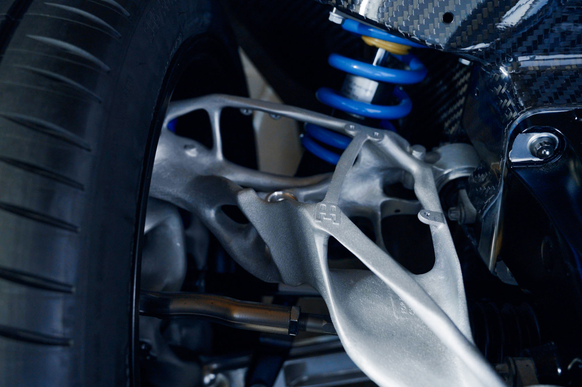 Software and AI are optimizing the shape of Bugatti’s parts. In the Tourbillon, it allowed the engineers to remove material atom by atom, leaving only what is absolutely necessary. In areas like the upper suspension components, this results in organic microstructures engineered for maximum strength and minimal weight.